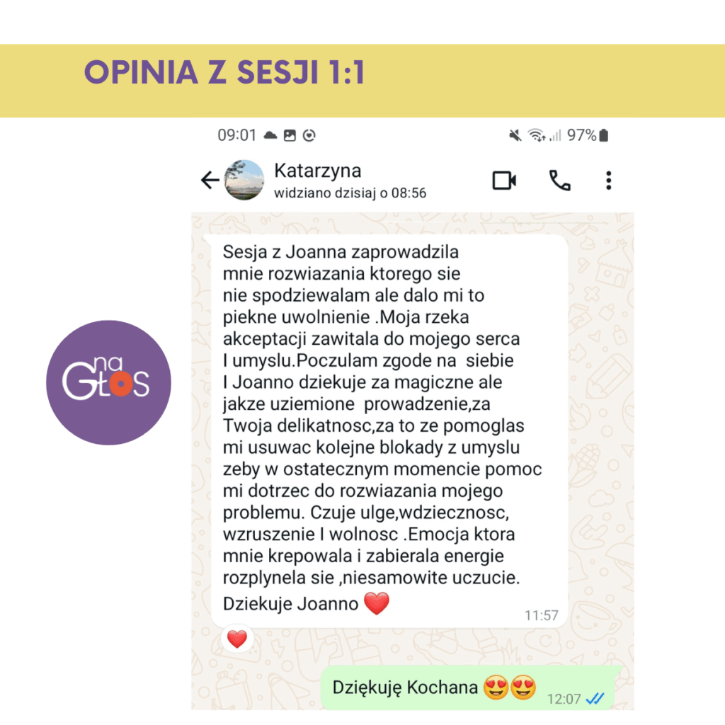 Pracuję z Głosem holistycznie, poprzez emocje, ciało, energię, dźwięk, dlatego żeby móc wejść głębiej w różne blokady, przekonania, napięcia, które osłabiają Głos, potrzeba procesu.